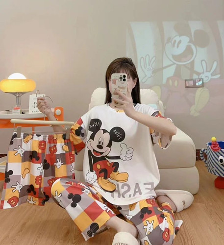 ست بلوز و شلوار و شورتک سه تکه کره ای طرح میکی موس پازلی کد 091ناموجود