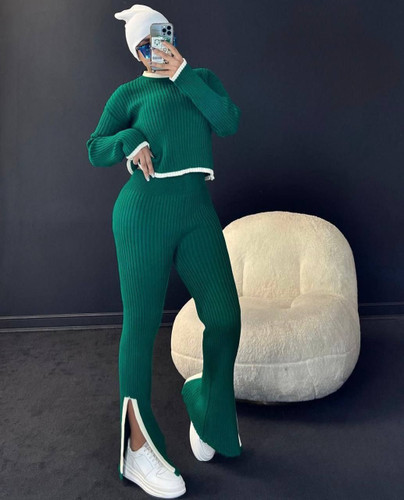 ست بلوز شلوار بافت چاک دار خط سفیدناموجود