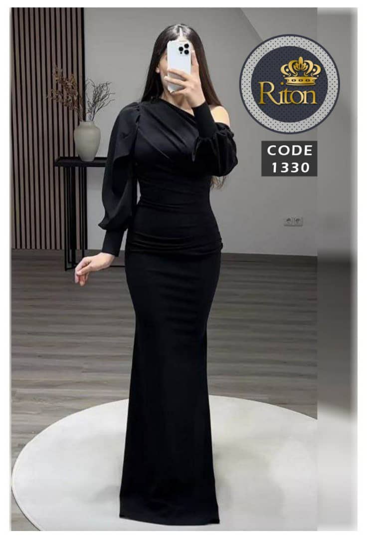 پیراهن مجلسی ماکسی بلند کرپ یقه کج کد 1330