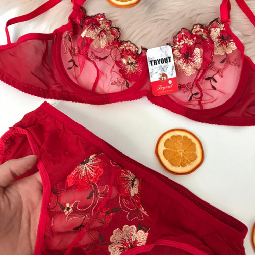 ست شورت و سوتین توری گلدوزی شده برند TRT رنگ قرمزناموجود