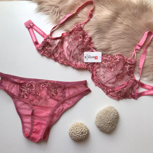 ست توری گلدوزی شده دو بند رنگ صورتیناموجود
