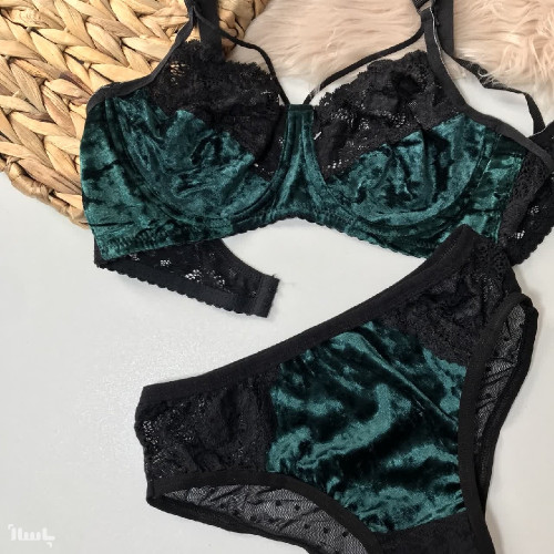 ست شورت و سوتین مخمل و دانتل برند شارمین رنگ سبز کله غازیناموجود