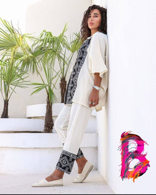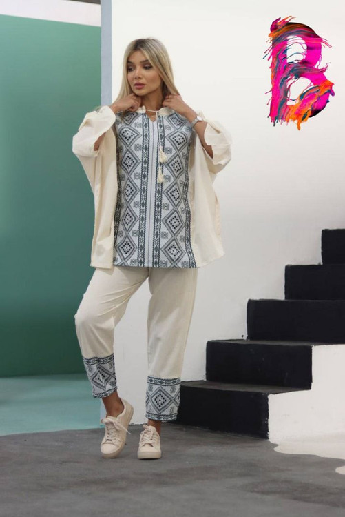 ست مانتو شلوار لنین نچرال بدون آبرفت