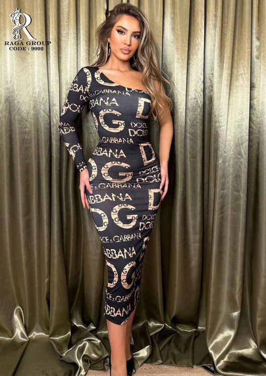 پیراهن مجلسی ماکسی رومی تک آستین D&G کد9992