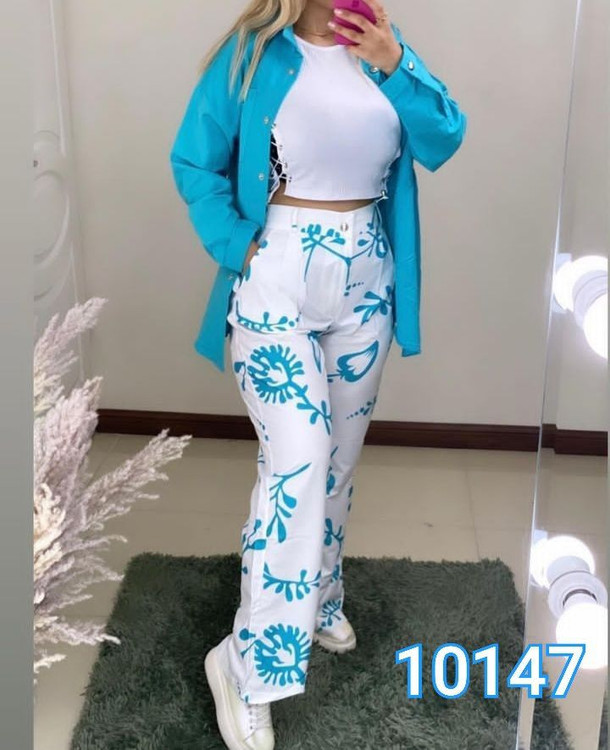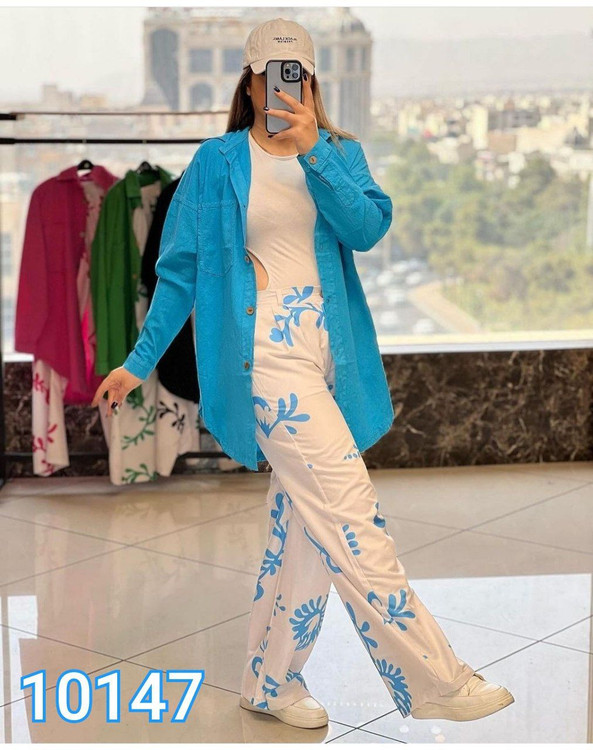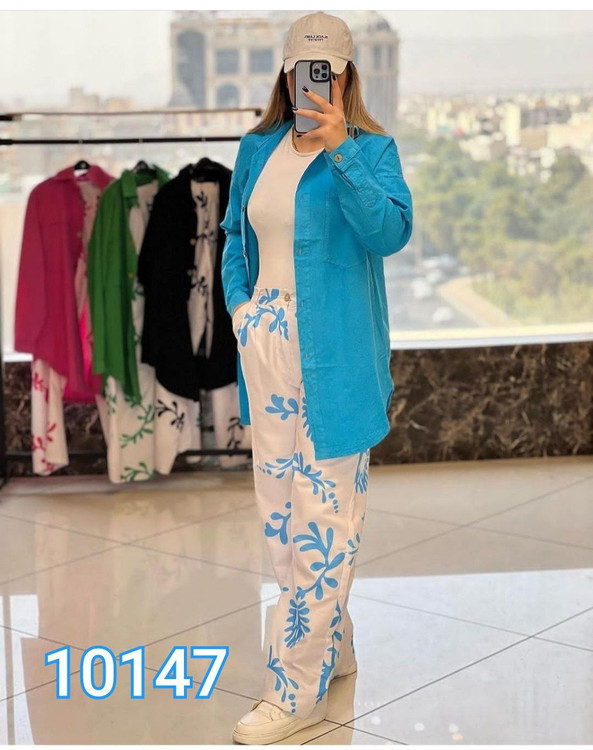 مانتو شلوار پشت طرح دار آبی کد 10147