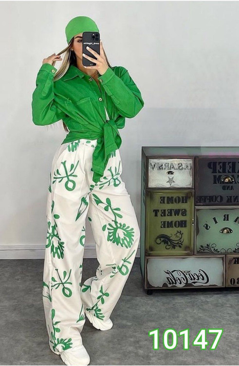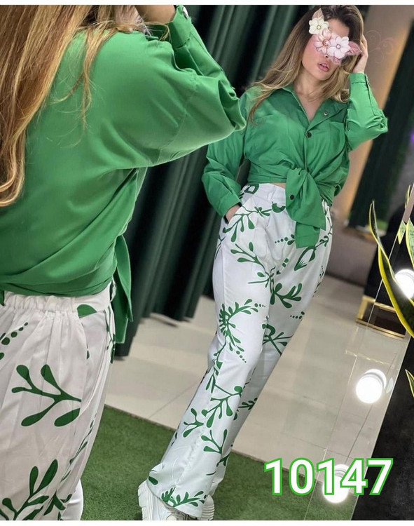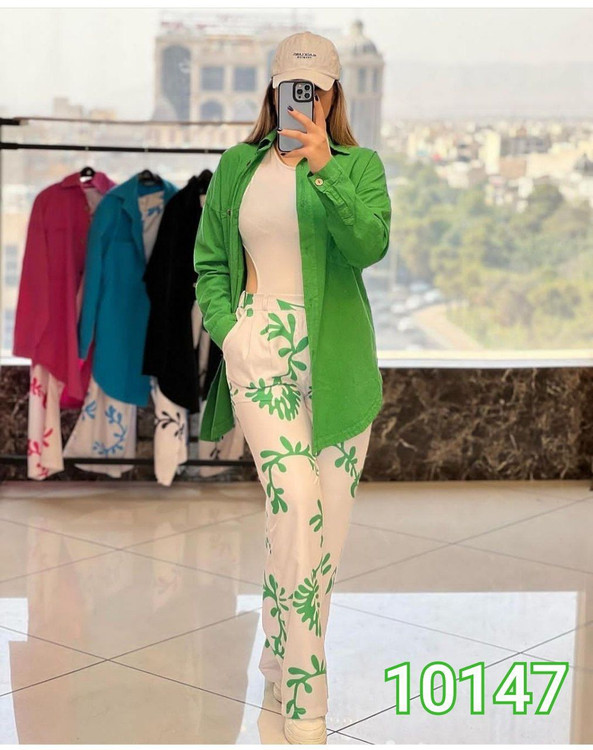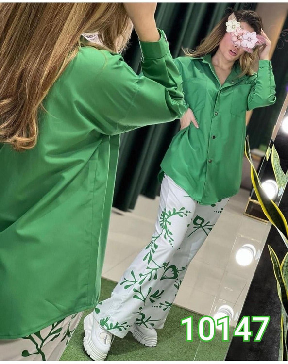 مانتو شلوار پشت طرح دار سبز کد 10147