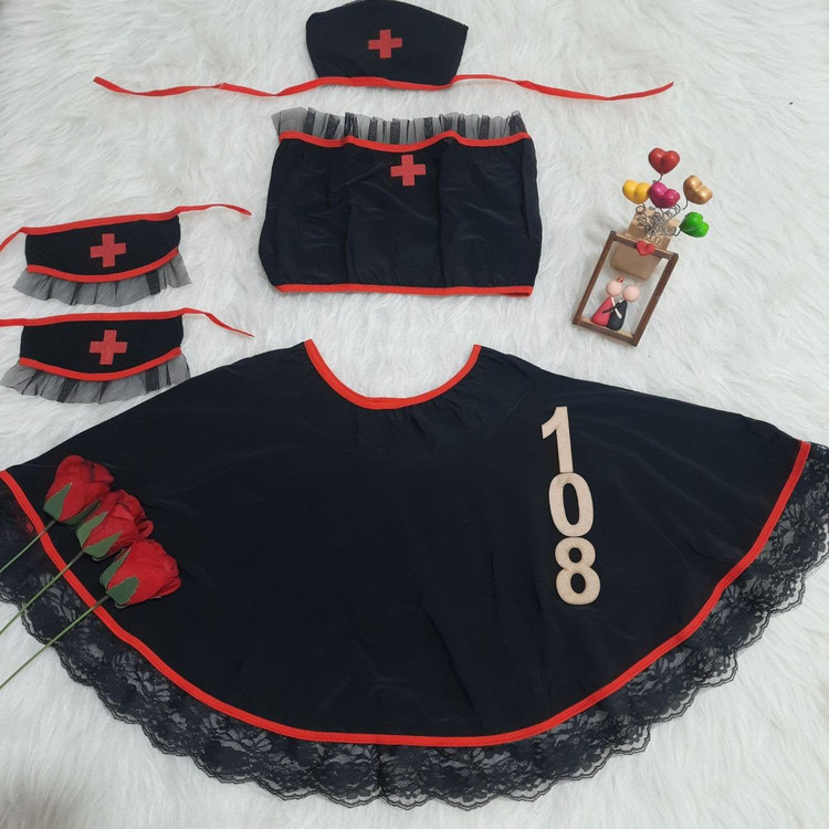 L کاستوم پرستاری 4 تکه مشکی کد 108