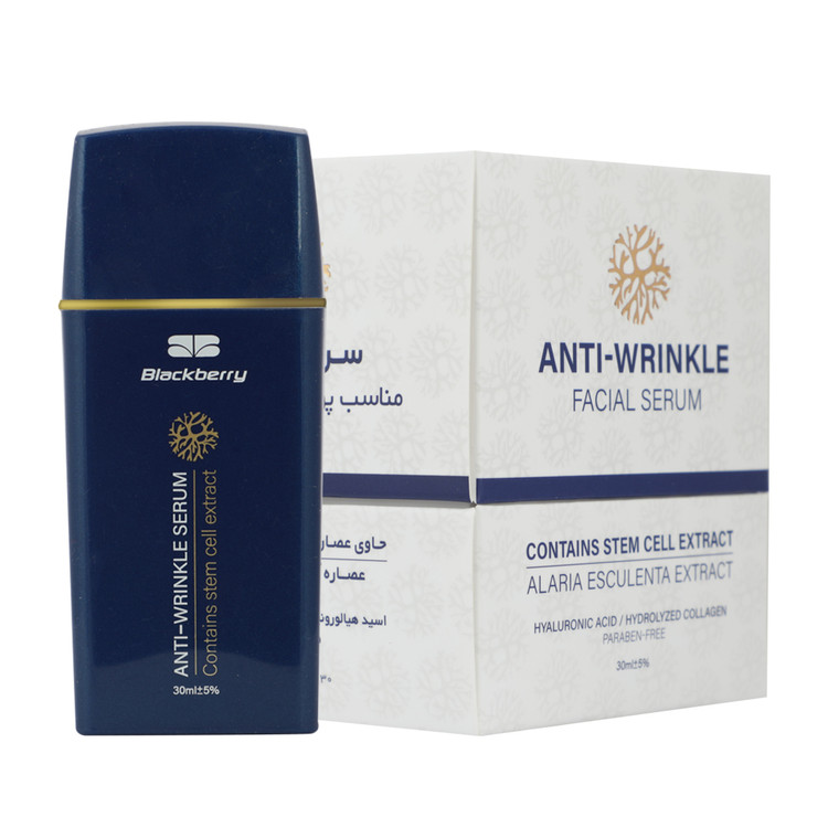 سرم مناسب پوستهای دارای چروک بلک بری، یک محصول قدرتمند و حاوی جدیدترین و قویترین ترکیبات روز جهان میباشد که کلیه نیازهای پوست صورت شما را برای جوانسازی تامین میکند. عصاره سلول بنیادی گیاه پنبه، با دارا بودن سه خاصیت اصلی ضدآلودگی محیطی، آنتی اکسیدانی، ضدالتهاب و ضدپیری، پوست را در برابر عوامل مخرب محیطی حفظ میکند. عصاره سلول بنیادی گوجی بری، ضمن دارا بودن تکنولوژی فیتوسل تک (برای نفوذ به عمق پوست)، بصورت مستقیم روی نوسازی سلولهای بنیادی پوست اثر میگذارد. پپتاید P3 یک میکرو پروتئین موثر در لایه برداری است که متفاوت با سایر لایهبردارها میباشد که باعث التهاب نمیشود و برای هر نوع پوست مناسب میباشد. عصاره آلاریا اسکولنتا، یا جلبک قهوهای، دارای مجموعهای از ترکیبات تقویتکننده پوست مانند ترکیبات معدنی و آنتی اکسیدانی بوده که به تقویت پوست کمک میکند. عصاره گیاه آب قاشقی، با خاصیت ترمیم کنندگی، ضدالتهابی و جوانساز، فرآیند پیری سلولها را معکوس میکند.