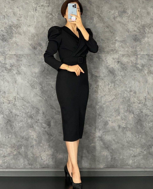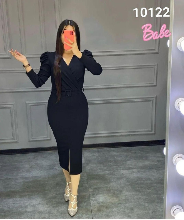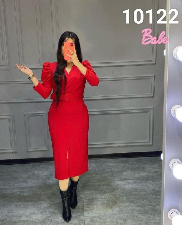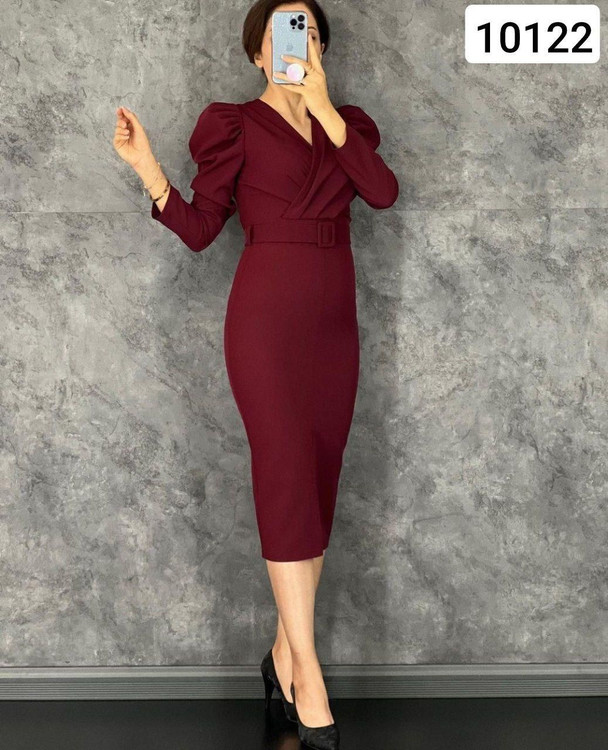 لباس مجلسی کرپ اسکاچی کمربند دار کد 10122