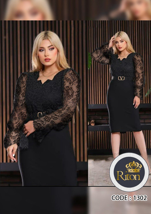 تونیک مجلسی کمربند دار کراپ و دانتل کد 1302