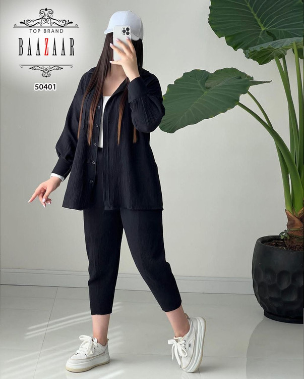 ست شومیز شلوار جلو باز کد 50401 کپی