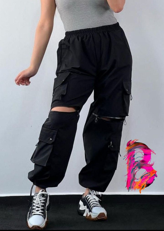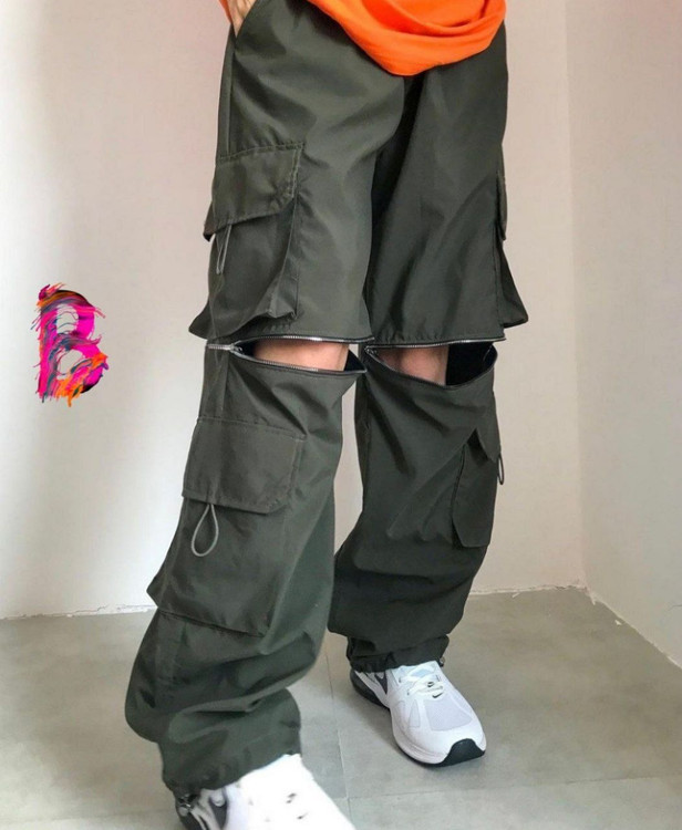 شلوار کارگو دو کاره پاچه نخ کش کتان