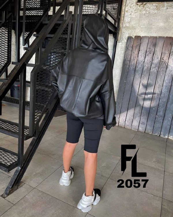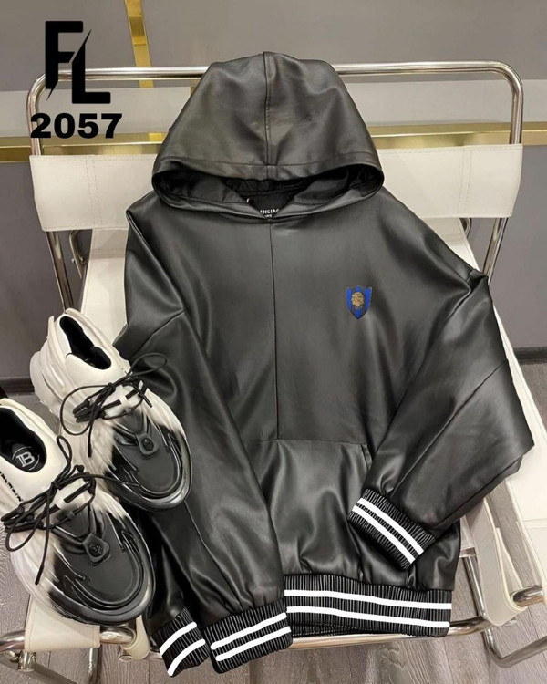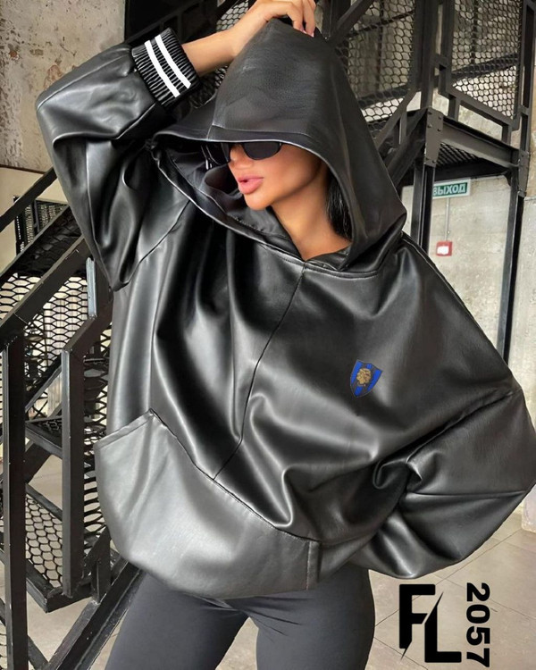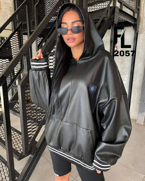 هودی طرح چرم کلاه دار مشکی کد 2057