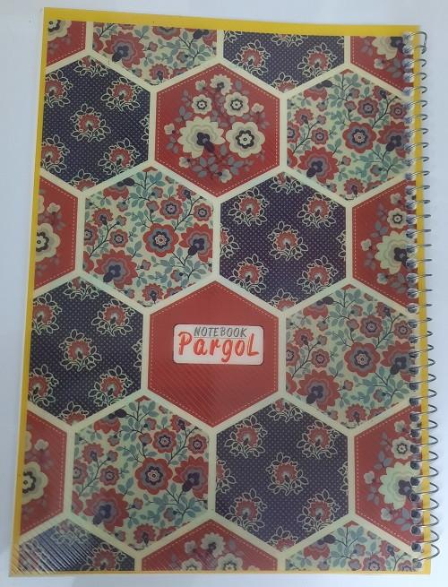 دفتر سیمی 50 برگ طرح لوزی گلدار می باشد و جلد طلقی دارد