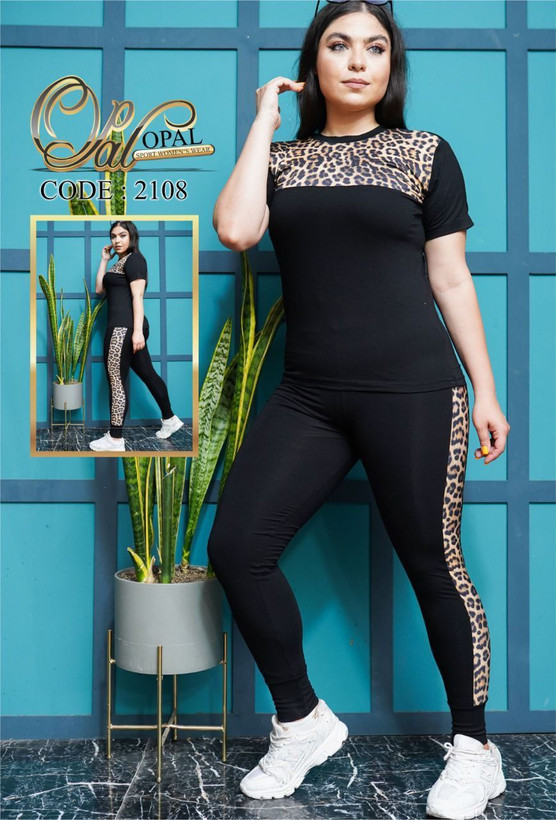 ست تیشرت شلوار پلنگی ویسکوز کد 2108