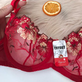 ست تور شیشه ای گلدوزی شده رنگ قرمز