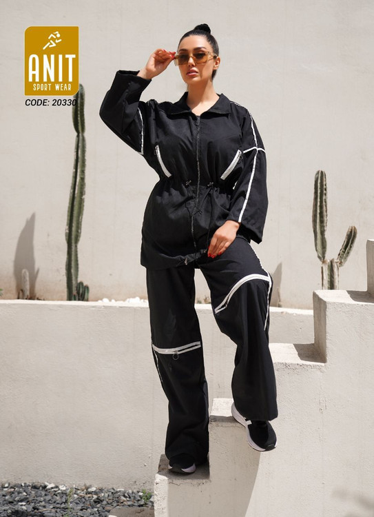 ست مانتو شلوار مغزی دار و جیبدار میکرو مشکی کد 20330