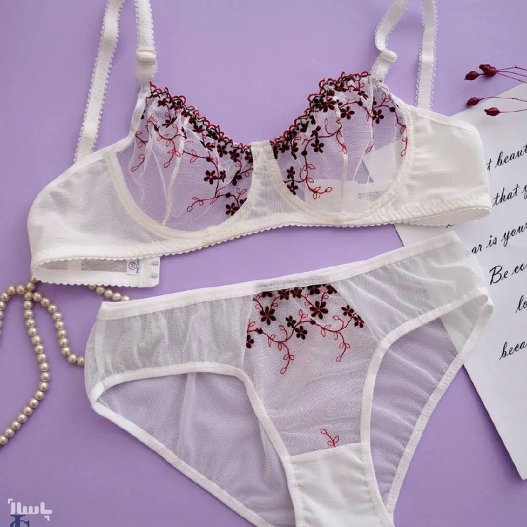 ست شورت و سوتین توری گلدوزی شده برند ترایوت رنگ سفید مشکی