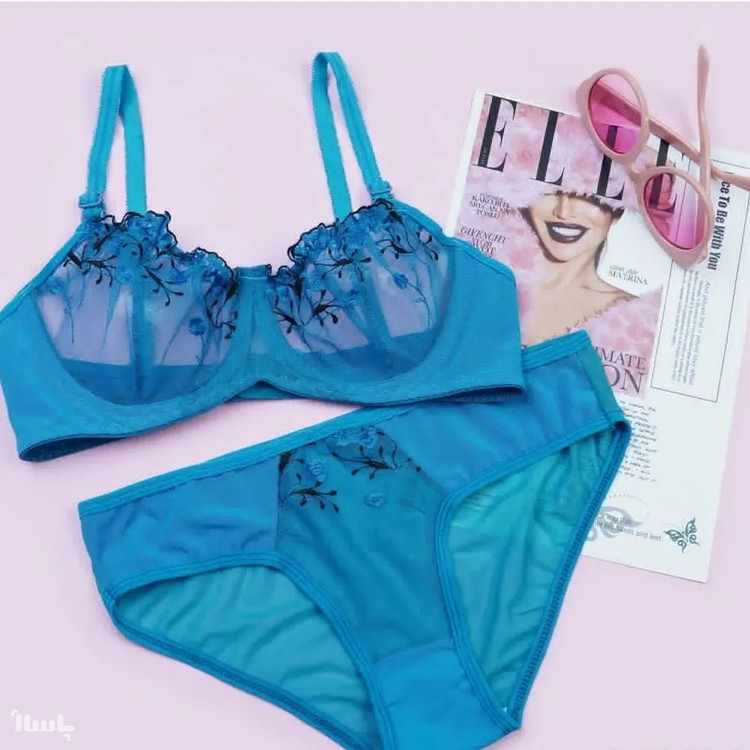 ست شورت و سوتین توری گلدوزی شده برند ترایوت آبی