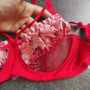 B ست شورت و سوتین توری گلدوزی شده برند TRT رنگ قرمز