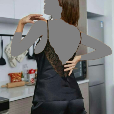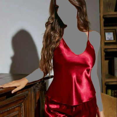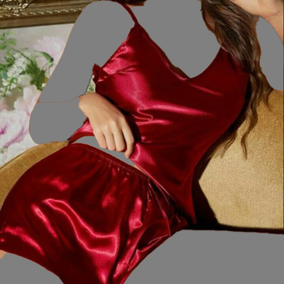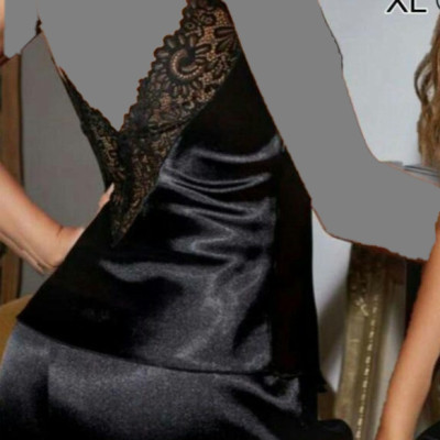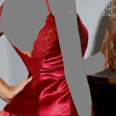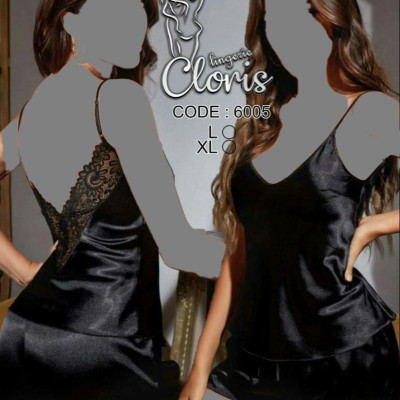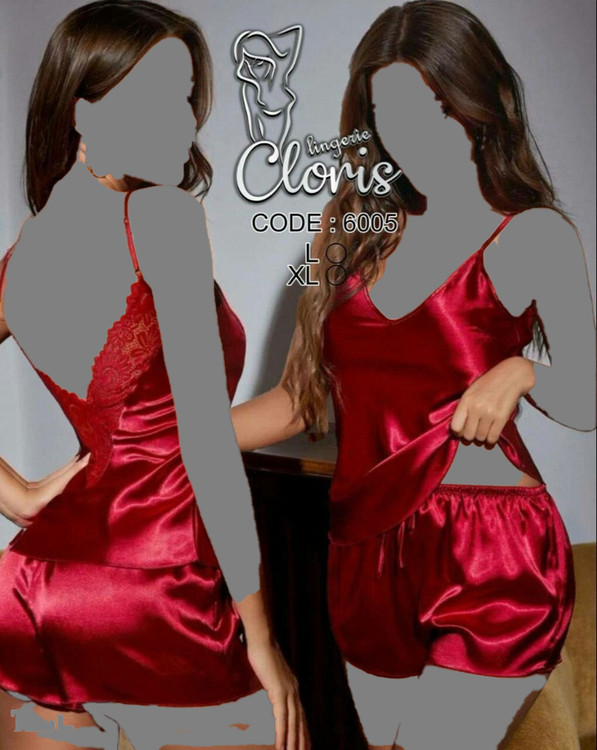 L ست تاپ و شلوارک ساتن پشت دانتل رگلاژدار کد 6005