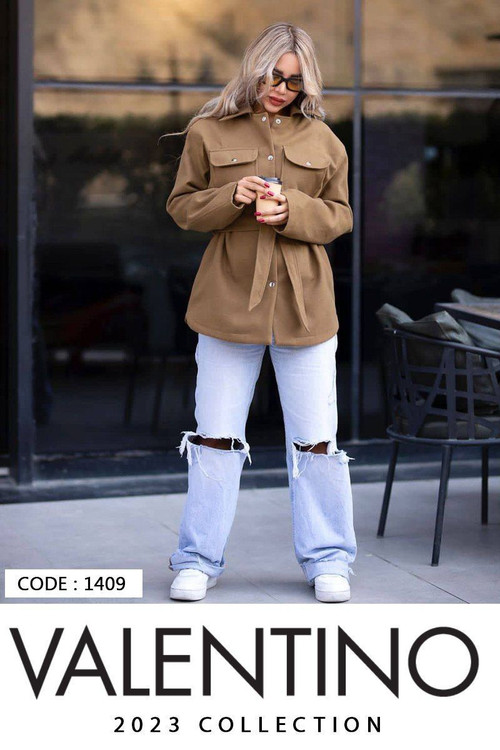 کت تک مانتویی کمربنددار دورس داخل کرکی کد 1409
