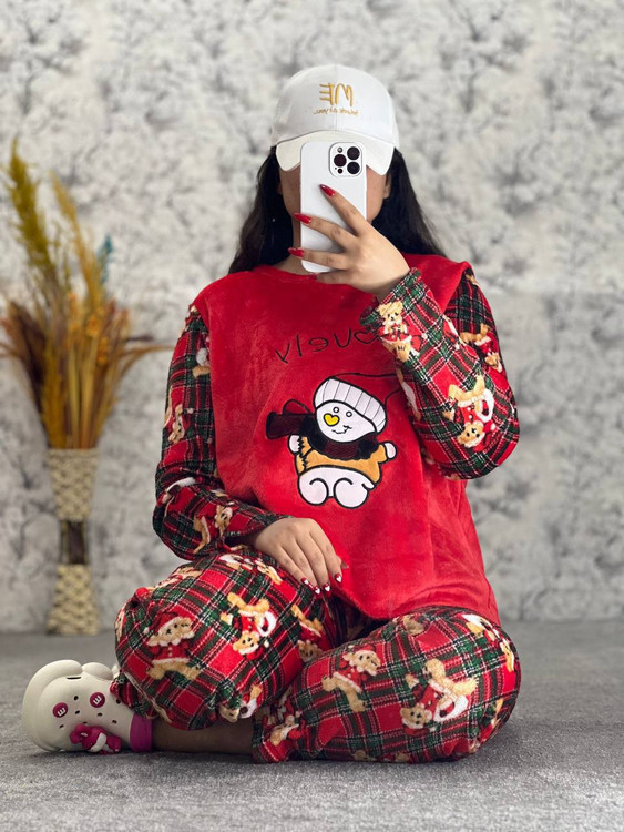 ست بلوز و شلوار تدی وارداتی طرح یلدایی