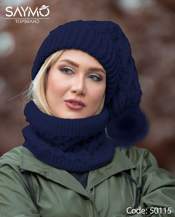 ست کلاه و رینگ(شال) مارپیچ بافت آکرلیک داخل خز کد 50115