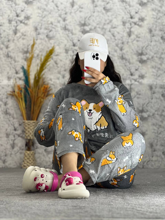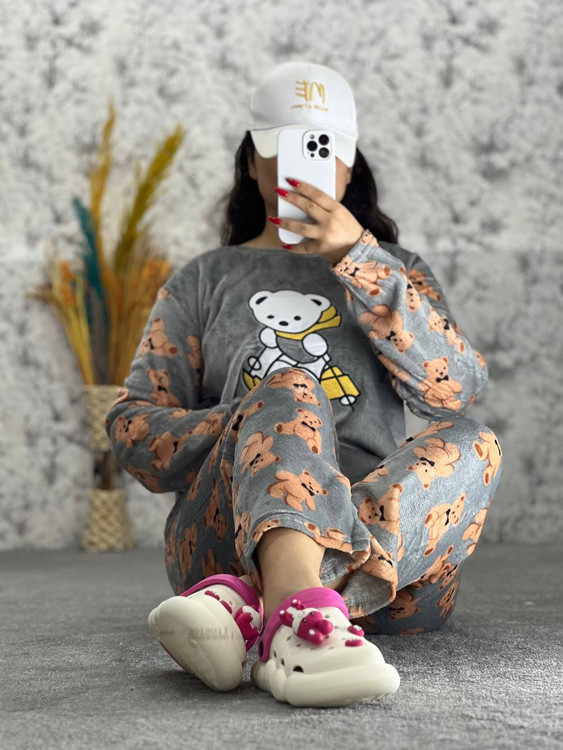 ست دوتیکه تدی طوسی روشن طرح دارفانتزی وارداتی