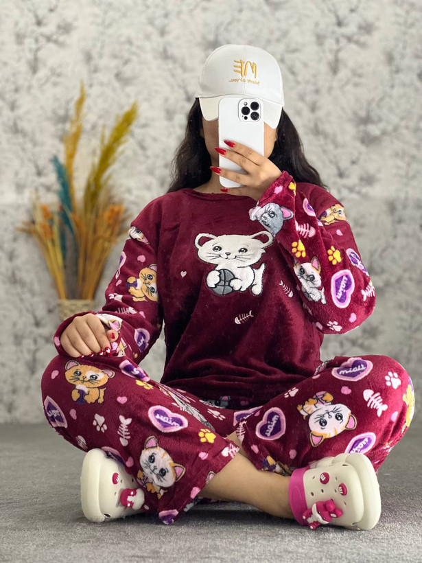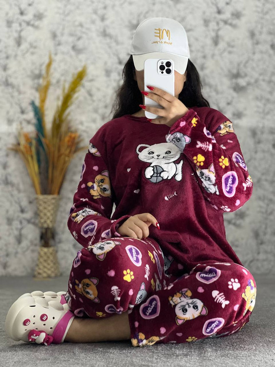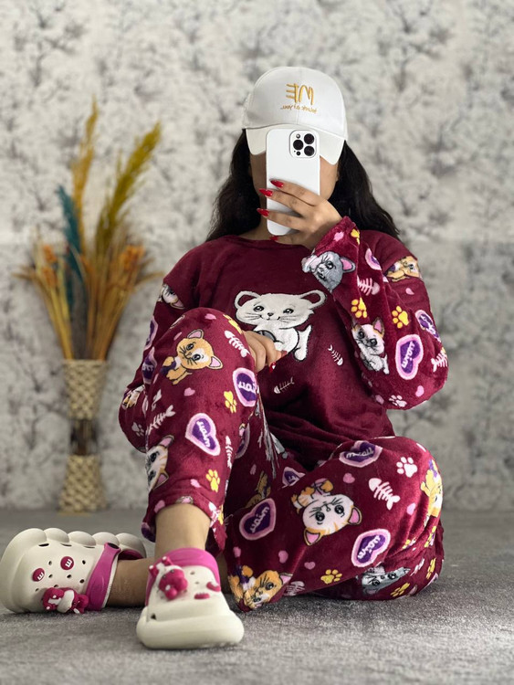 ست دوتیکه تدی زرشکی طرح دار فانتزی وارداتی