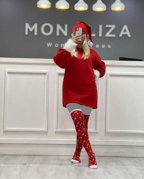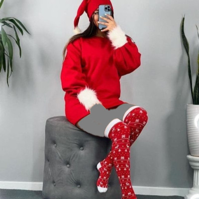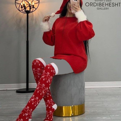 ست سه تیکه دورس و جوراب و کلاه طرح کریسمس
