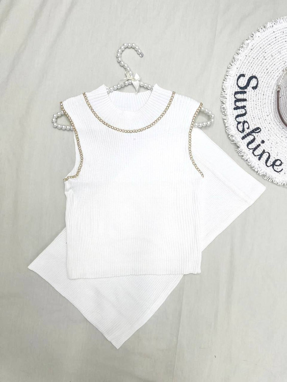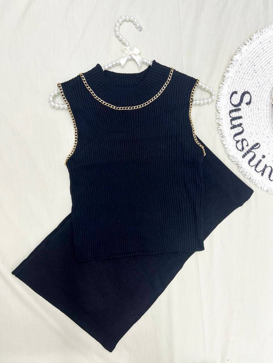 L ست بلوز شلوار بافت چاک دار خط سفید