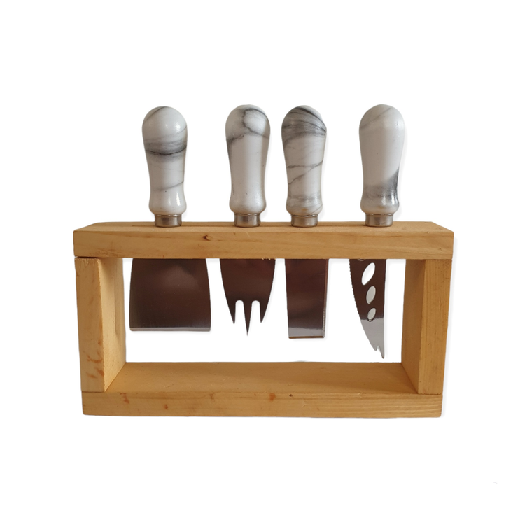 جنس استند چوبی و دسته چاقو ها ماربل می باشد و تیغه ان استیل ضد زنگ می باشد