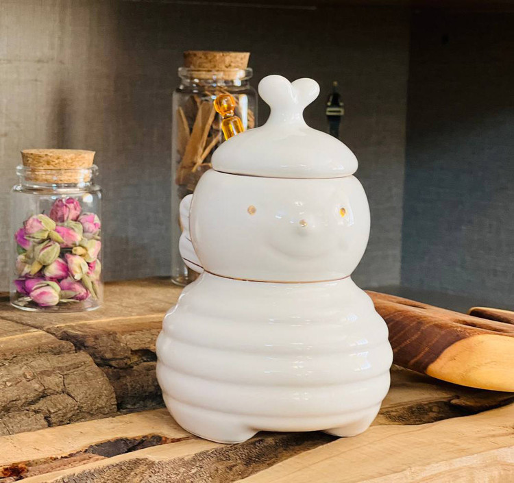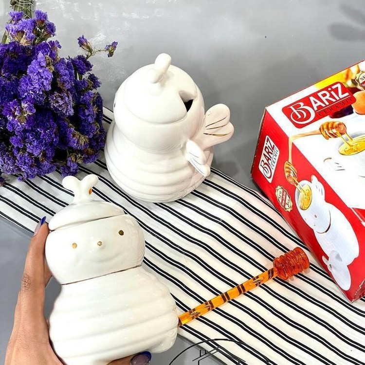 ظرف عسل خوری زنبوری یک انتخاب خاص و شیک برای کسانی است که به دکور و تزئینات داخلی منزل خود اهمیت می دهند، این ظرف عسل خوری سرامیکی علاوه بر استفاده به عنوان دکور و تزئینات در سر سفره صبحانه نیز استفاده می شود. و به دلیل طراحی زیبا آن به شکل زنبوری ، استفاده از این محصول فانتزی باعث اشتها بیشتر هنگام صبح می شود. شستن این محصول به دلیل سرامیکی بودن آن بسیار راحت می باشد. همچنین ظرف عسل خوری باریز دارای یک قاشق مخصوص از جنس اکریلیک می باشد که برای ریختن عسل روی نان استفاده می شود.