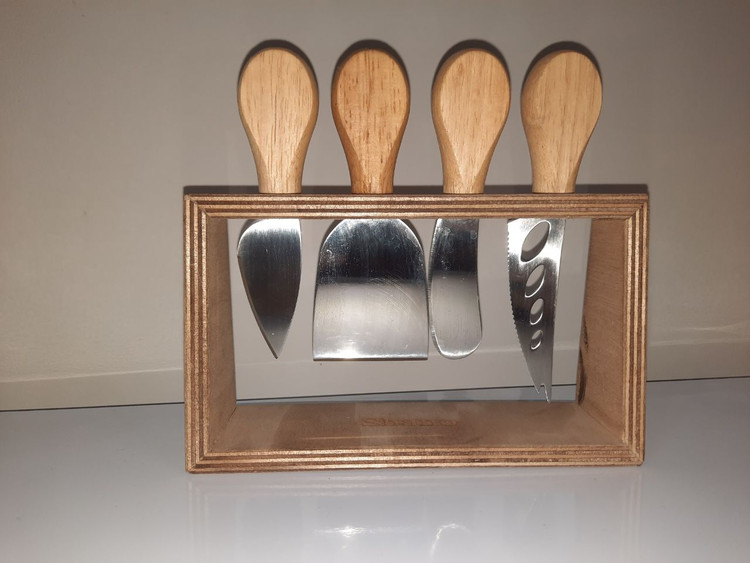 جنس استند چوبی و دسته چاقو ها چوبی می باشد و تیغه ان استیل ضد زنگ می باشد