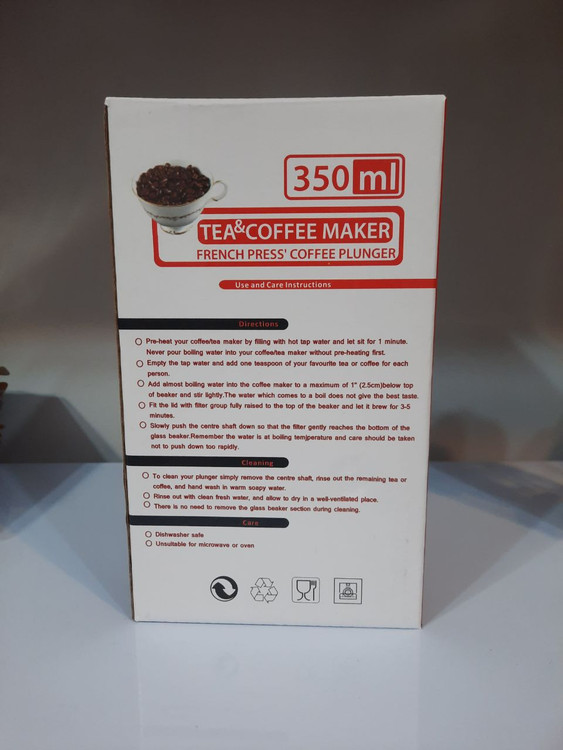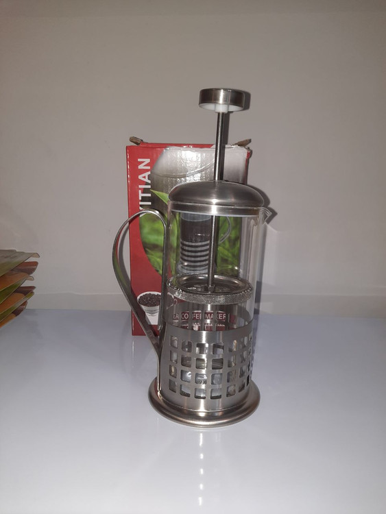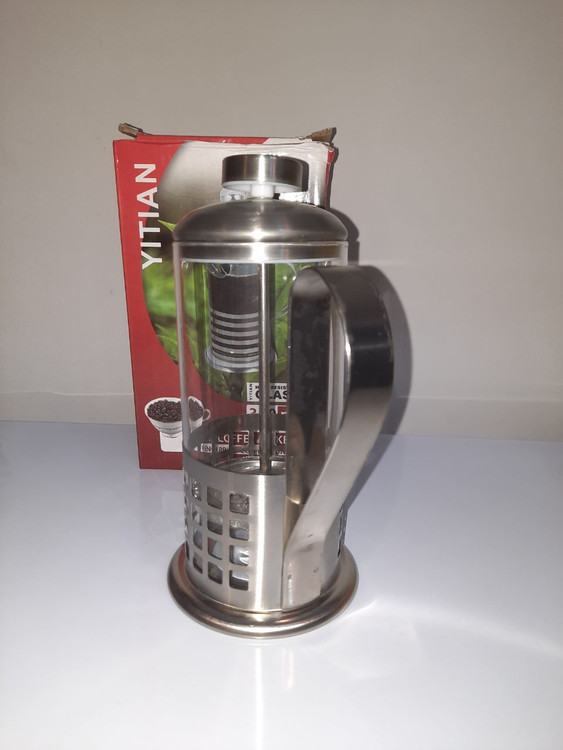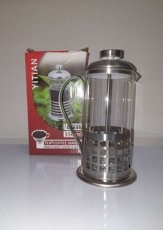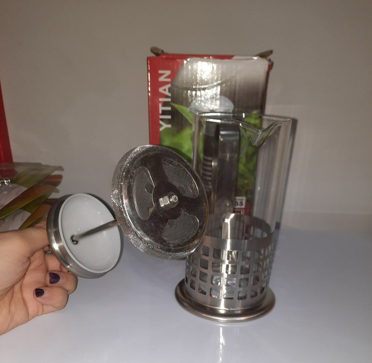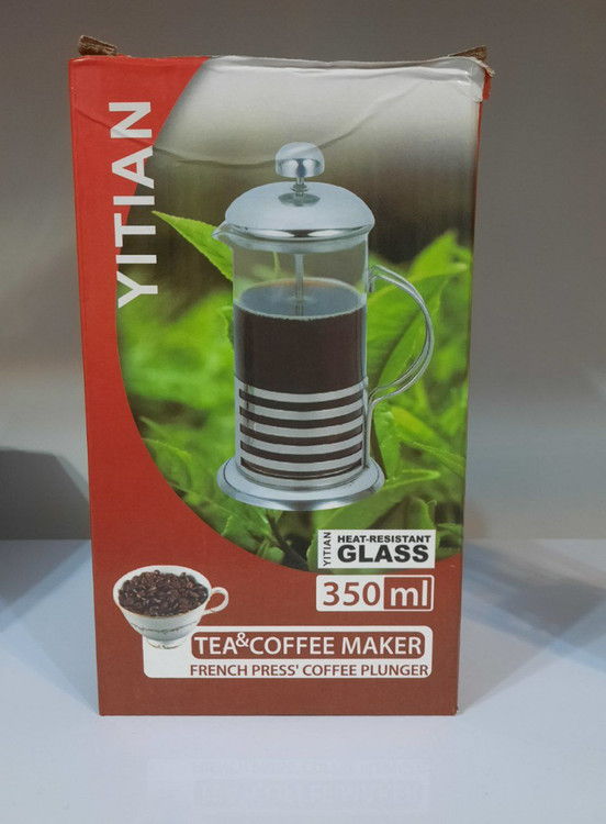 فرنچ پرس یتیان 350 میلی لیتر و ابعاد : 18x9 سانتی متر از ویژگی های این فرنچ پرس می توان به جنس بدنه ی استیل و شیشه ، درب مخصوص به همراه صافی تلمبه ای و طراحی لوکس و منحصر به فرد آن اشاره کرد. این فرنچ پرس بدون نیاز به برق و حرارت کار می کند و به راحتی به صورت دستی و یا در ماشین ظرفشویی قابل شستشو می باشد.این فرنچ پرس از قهوه ساز و دمنوش ساز های پرکاربرد در آشپزخانه شما میباشد.