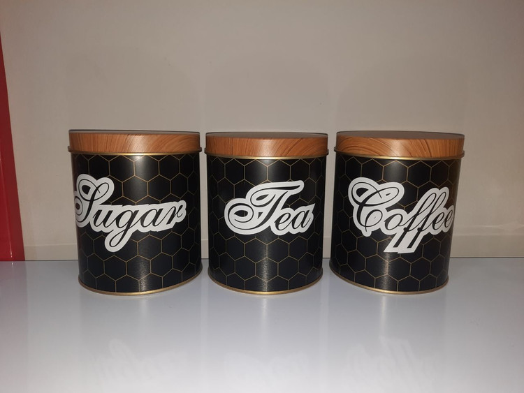 پاسماوری ۳تایی.ست.فلزی درب طرح چوب کنار گاز و برای قند نبات چای شکر قهوه حبوبات پرکاربرد در آشپزخانه