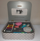 شامل : 7عدد قرقره ، یک عدد متر ، یک عدد قیچی ، یک عدد انگشت دانه ، یک عدد ماسوره ، پک سوزن ته گرد رنگی ، پک سوزن خیاطی و جا سوزنی قلبی