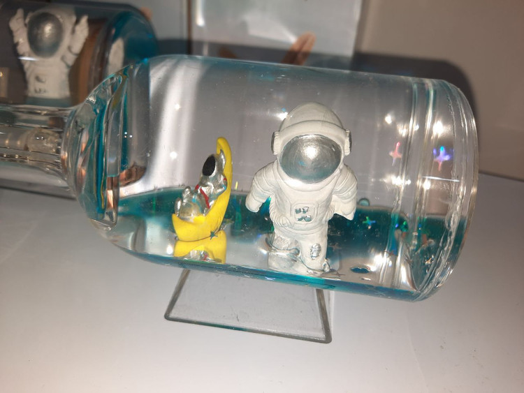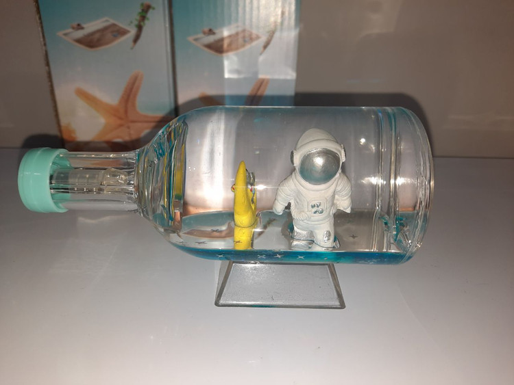 اگه به دنبال یه هدیه شیک و خاص و متفاوت هستنید این بطری آکواریومی رو فراموش نکنید . کار شیک برای هدیه دادن هست // مطمئنم هرکی کادو بگیره خیلی ذوق میکنه . قسمت جذابش اینه که همراه با این فضانوردمون یه شی دیگه تیز داخل بطری هست که شما میتونید یکی رو انتخاب کنید : ماه / موشک // هواپیما جالب نیست؟!![]()