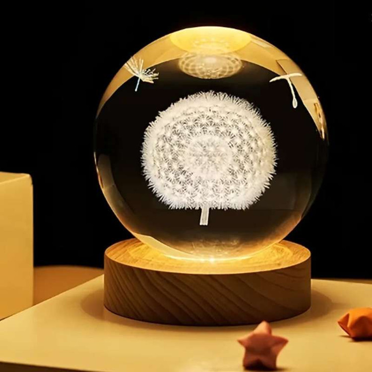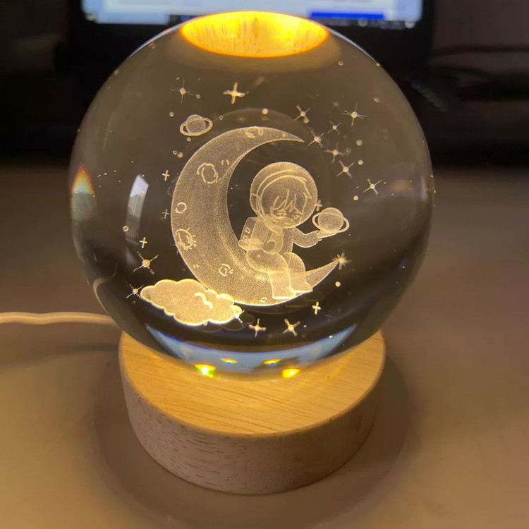 چراغ خواب مدل گوی شیشه ای 3D قطر 6