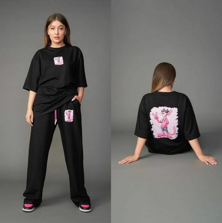 ست تیشرت شلوار لانگ (بگی) طرح استیکر ترک یشیم
