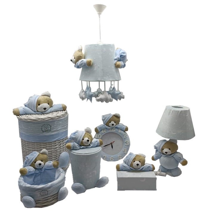 ست اتاق کودک 7تیکه مخمل خرس نانان رنگ آبی