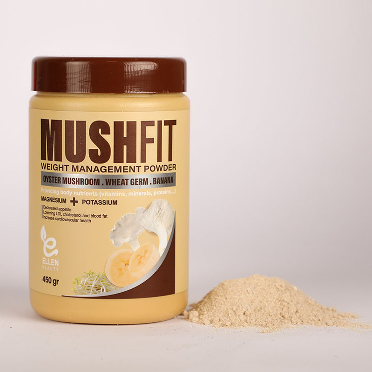 پودر قارچ صدفی به همراه پودر جوانه گندم و پودر موز 450 گرمی