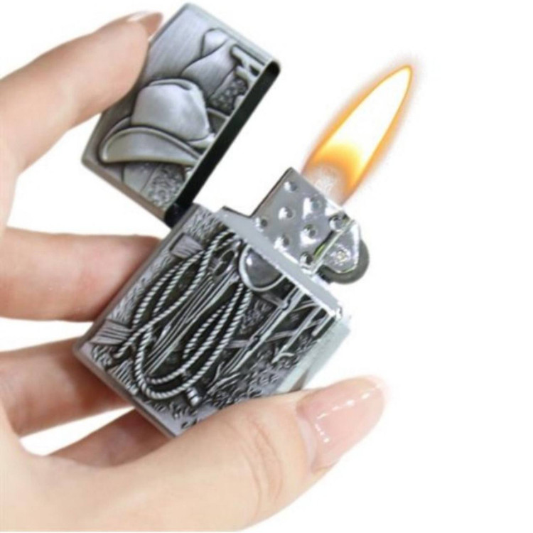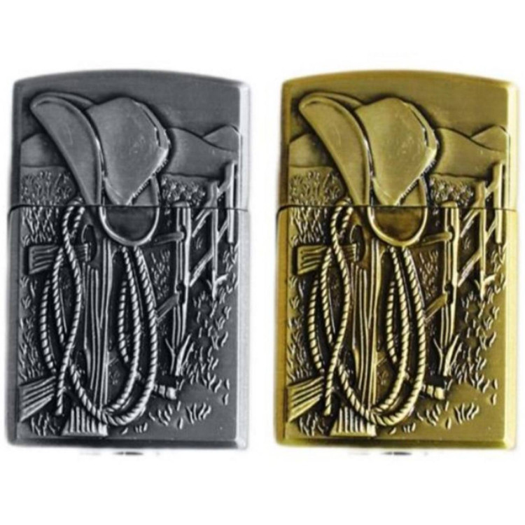 فندک طرح زیپو گازی کلاه ، طناب کابویی (در دو رنگ)