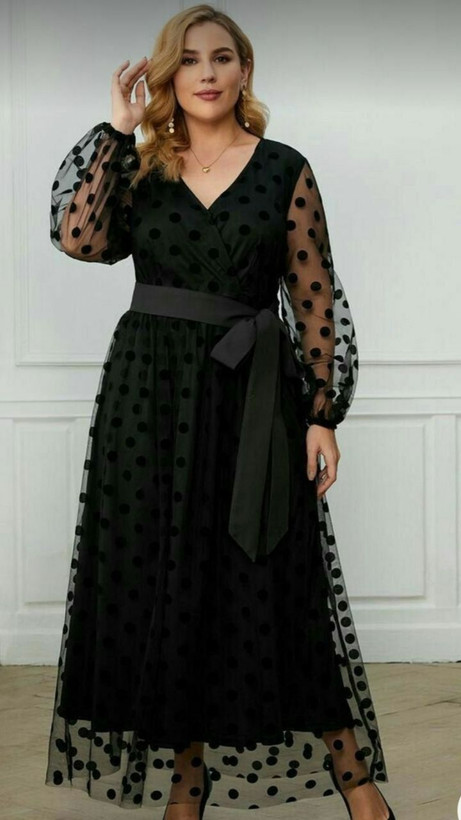پیراهن ماکسی کرپ باربی و تور بیگ سایز مشکی