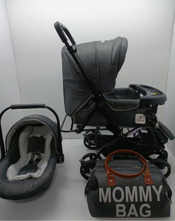 سرویس کالسکه دلیجان مدل مامی بگ با بدنه 130دلیجان و رنگ بدنه برنز، طراحی زیبا و سبک بدنه کالسکه که از جنس آلومینیوم میباشد،آرامش خیال را به والدین میدهد. که در نهایت این محصول یک وسیله ی شیک و کاربردی را برای فرزند شما میباشد. این محصول قابلیت تنظیم ارتفاع را دارد.