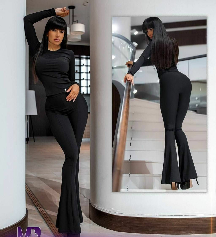 ست بلوز استین بلند و شلوار دمپا گشاد غواصی کد 66257 مشکی بیگ سایز