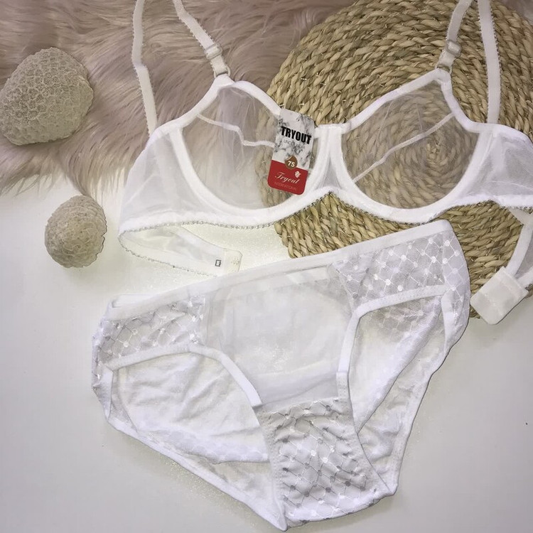 Bست شورت و سوتین توری کریستالی بدن نما برند ترایوت رنگ سفید