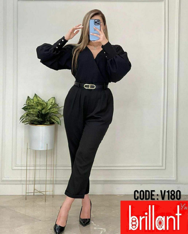 سرهمی آستین دکمه گلاسکو کد V180 مشکی