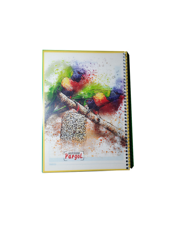 دفتر سیمی 50 برگ طرح طوطی می باشد و جلد طلقی اکریلی دارد